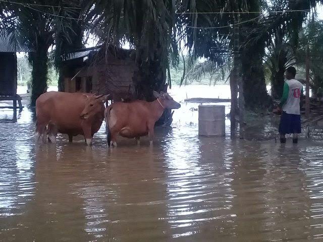 Banjir di Kampar Membuat Warga Mengungsikan Hewan Ternak Mereka ke Tempat Aman (Foto: RMC/Ari)