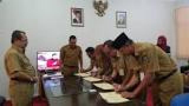 Penandatanganan Pakta Integritas diawali Pejabat Administrator, Kabid Anggaran H Amari, Kabid Perbendaharaan Zamri, Kabid Akuntansi dan Pelaporan Susi Handayani, Kabid Aset Jumiharto.