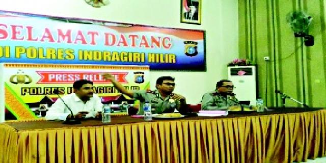Kapolres Inhil saat memimpin press release di Mapolres Inhil belum lama ini.