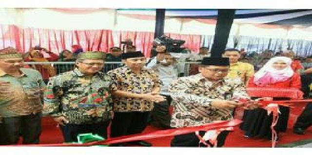 Kakan Kemenag Siak Muharom menggunting pita, pertanda Masjid Darussalam bantuan PT Pelindo Cabang Pekanbaru di Perawang diresmikan.