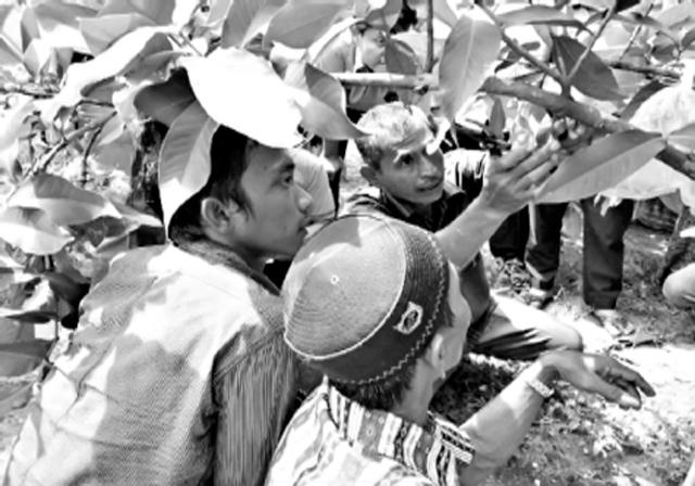 Mereka memberikan penjelasan bagaimana cara memilih bibit yang bagus, perawatan yang sesuai dengan kebutuhan, pemupukan tanaman buah, penanggulangan hama tanaman buah dan memperbanyak bibit tanaman buah.