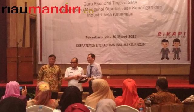 PEKANBARU (RIAUMANDIRI.co) - Tidak hanya menjadi tenaga pendidik, tetapi seorang guru diharapkan juga bisa menjadi agen literasi keuangan bagi para siswa dan masyarakat. Hal ini seiring dengan masih minimnya pemahaman masyarakat terkait dengan hak dan kewajiban saat menggunakan jasa lembaga keuangan di Riau.