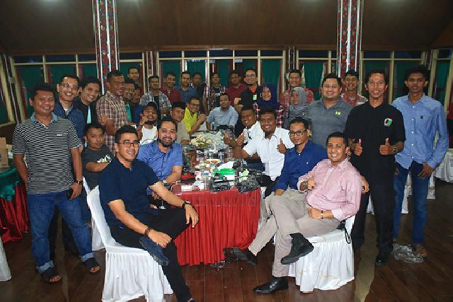 Pengurus IPMR foto bersama saat rapat persiapan Rakor di Rumah Gadang, Jl Diponegoro No 9, Pekanbaru, Kamis (6/4).