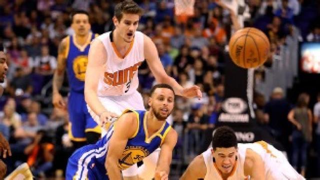 Phoenix (RIAUMANDIRI.co) - Golden State Warriors mengalahkan Phoenix Suns 120-111. Hasil itu membuat Warriors seraya menciptakan sebuah rekor baru di NBA. Bertanding di Talking Stick Resort Arena markas Suns, Kamis (6/4) WIB, Warriors mengamuk sejak kuarter pertama. Stephen Curry tampil prima dengan 23 poinnya guna membantu Warriors unggul 41-18. Namun demikian, Suns bangkit di kuarter dua. Di kuarter ini Suns melampaui tambahan poin Warriors dengan 34-17, sehingga menutup interval pertama dengan skor 58-52 untuk keunggulan tuan rumah.