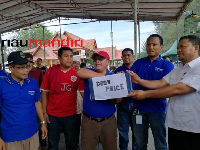 Sekda Dumai HM. Nasir bersama Asisten II Pemko Dumai H. Syamsuddin dan Syahrial Amini Anggota DPRD ?mengambil kupon door price untuk peserta lomba kicau burung Sempena HUT Kota Dumai ke 18 (Foto: RMC/Parno)