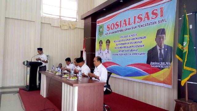 Staf Ahli Bupati Drs. Askandar menjelaskan, kegiatan ini sangat penting dan strategis karena menyangkut pelayanan adminsitasi kependudukan yang langsung bersentuhan dengan masyarakat. Untuk itu melalui sosialsasi ini diharapkan dapat menambah wawasan peserta sehingga apa yang menjadi harapan masyarakat yakni mendapatkan pelayanan aman, cepat, lancar dan efisien dapat terwujud.