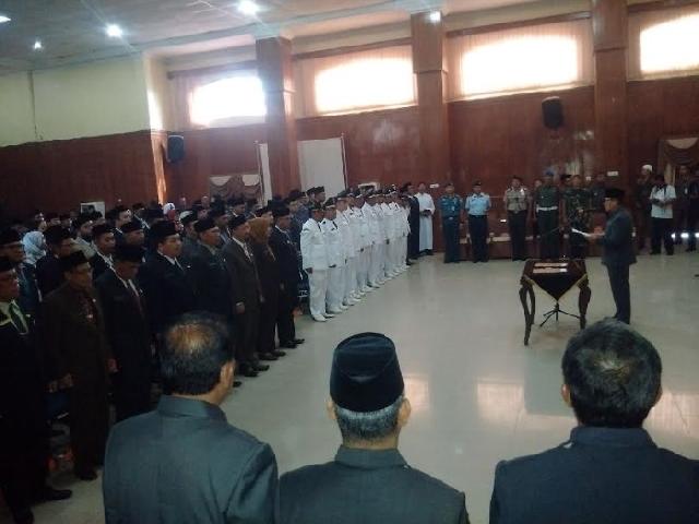 Walikota Dumai Drs H Zulkifli AS melantik 155 pejabat eselon II, III dan IV dilingkungan Pemerintah Kota Dumai di Gedung Pendopo