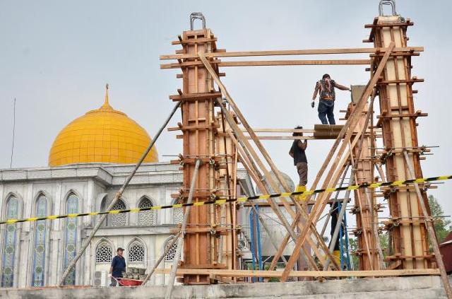 Proses revitalisasi Masjid Raya Pekanbaru yang menghilangkan bentuk aslinya (dok. KataKabar)