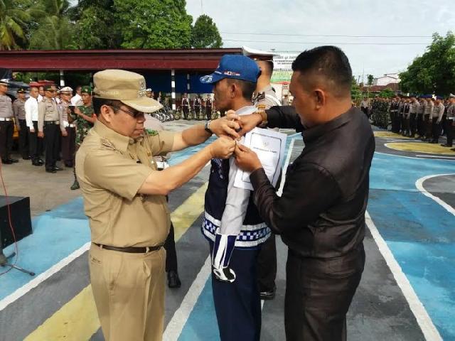 SELATPANJANG (RIAUMANDIRI.co) - Polres Kepulauan Meranti melaksanakan apel gelar pasukan Operasi Ramadniya Siak 2017, Senin (19/6/2017). Upacara dipimpin oleh Bupati Drs H. Irwan Nasir yang didampingi Kapolres AKBP Barliansyah, SIK berserta Waka Polres, Kabag, Kasat Kapolsek, Perwira, dan personil Polres Meranti.
