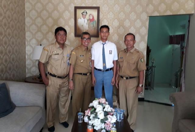 Suherman Yusuf, Fikri Ardiansyah foto bersama Bupati Mursini, sebelum keberangkatan ke Jakarta (Foto: RMC/Hendra)