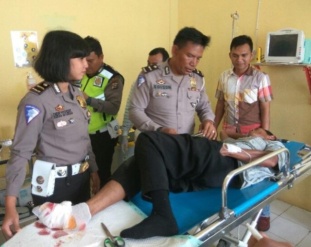 Jais (59), pengendara sepeda motor asal Koto Gasip kabupaten Siak, mengalami patah tulang kaki bawah