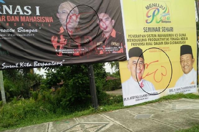 Baliho Gubernur Riau dan Arsyadianto Rachman dicoret bergambar kelamin (Foto: RMC/Nurmadi)