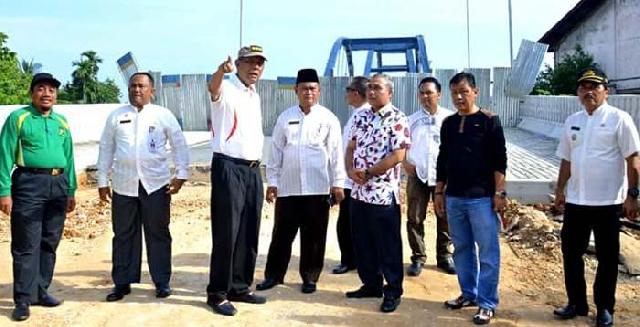 RIAUMANDIRI.co, BANGKINANG KOTA - Bupati Kampar H Azis Zaenal didampingi Sekda Kampar Drs Yusri, MSi, dan beberapa pimpinan Organisasi Perangkat Daerah (OPD) terkait di lingkungan Pemerintah Kabupaten Kampar, meninjau beberapa lokasi pembangunan di antaranya, Jembatan Water Front City, pembenahan Pasar Inpres, dan objek wisata Stanum, Jumat (6/10/2017).