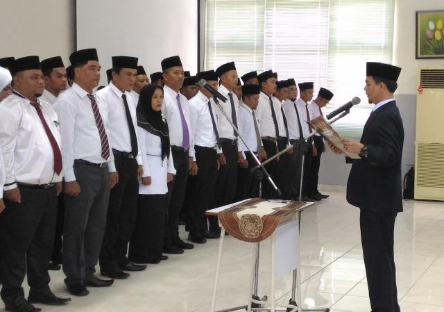 KETUA Panwaslu Kabupaten Kampar Marhaliman melantik 63 Panwaslu Kecamatan di Aula Polkam