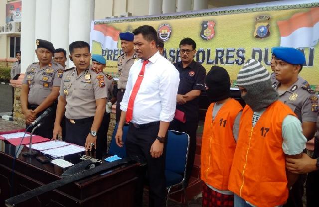 Kedua tersangka saat ekspos kasus di Mapolres Dumai