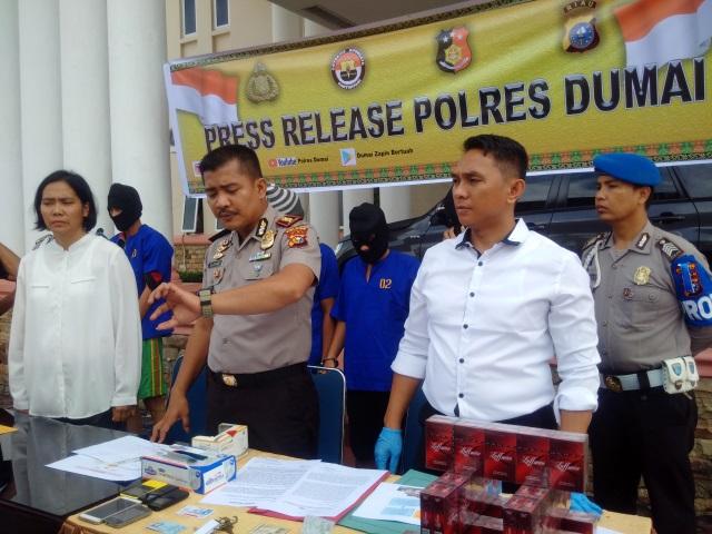 Kapolres Dumai AKBP Restika Pardamean Nainggolan SIK, didampingi Kasat reskrim, AKP Awaluddin, Nova Arianti selaku Kasat Reskrim juga Paur Humas Polres Dumai, membeberkan hal itu, Senin (6/11/2007) saat menggelar Press Release di Halaman Mapolres Dumai.