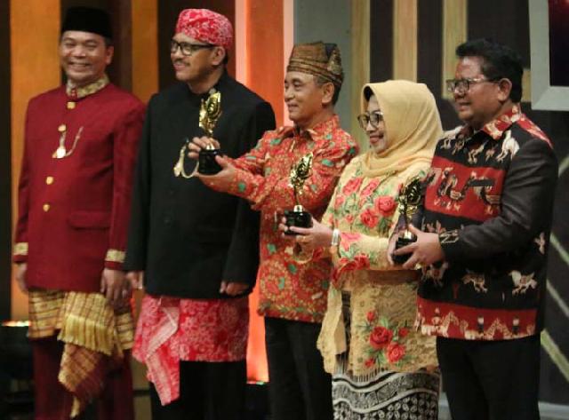 Bupati Pelalawan HM Harris foto bersama usai menerima penghargaan API 2017. (Foto: RMC/IST)