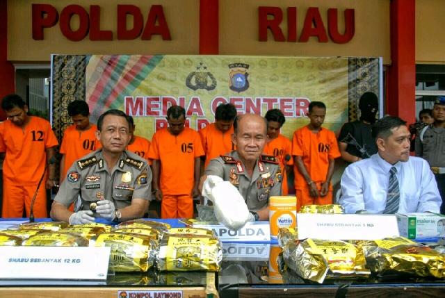 RIAUMANDIRI.CO, PEKANBARU - Kepolisian Daerah Riau menggagalkan upaya penyelundupan 17 kilogram sabu-sabu asal Malaysia menuju Pekanbaru. Selain barang bukti yang diduga sebagai stok penyambutan pergantian tahun, Polisi juga mengamankan 7 orang tersangka.