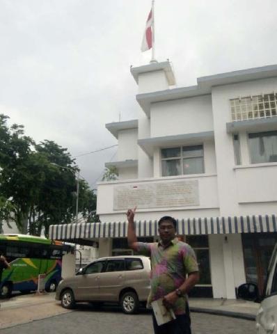 RIAUMANDIRI.CO, PEKANBARU - Dulu, di atas tempat itulah insiden Hotel Yamato, 19 September 1945 yang sangat terkenal itu terjadi. Sejarah mencatat, pengibaran bendera Belanda: biru, merah, putih dirobek oleh pemuda-pemuda pejuang Surabaya. Lalu, disisakan warna merah, putih untuk dinaikkan kembali ke atas tiang. "Merdeka!”
