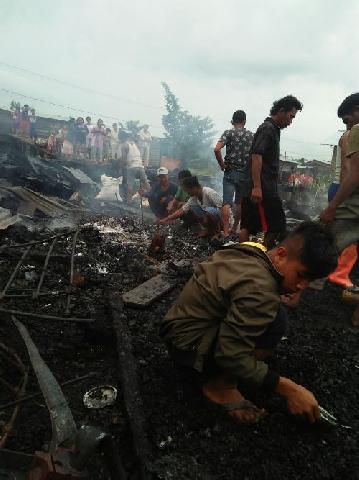 Toko sembako dan grosir milik Barita Saragih rata dengan tanah akibat kebakaran.