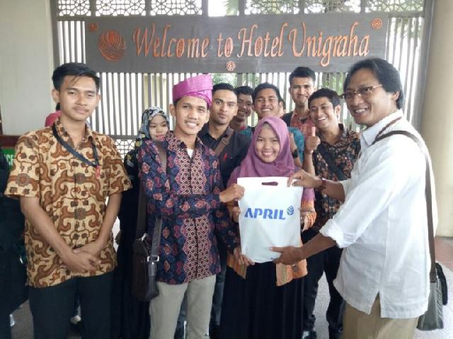 Pengurus Perhumas Muda Riau menerima cenderamata dari Humas PT RAPP saat kunjungan ke perusahaan bubur kertas dan kertas itu.