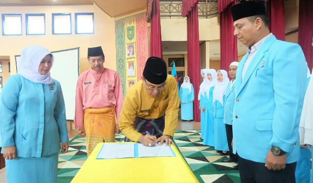 RIAUMANDIRI.CO, TEMBILAHAN - Bupati Kabupaten Indragiri Hilir (Inhil), HM Wardan menghadiri peringatan Hari Anak Nasional (HAN) Tahun 2017 dan Pelantikan Pengurus Himpunan Pendidik dan Tenaga Kependidikan Anak Usia Dini Indonesia (HIMPAUDI) Kabupaten Inhil Periode 2016 - 2020 di Gedung Engku Kelana, Jalan Baharuddin Yusuf, Tembilahan, Kamis (3/8/2017) pagi.