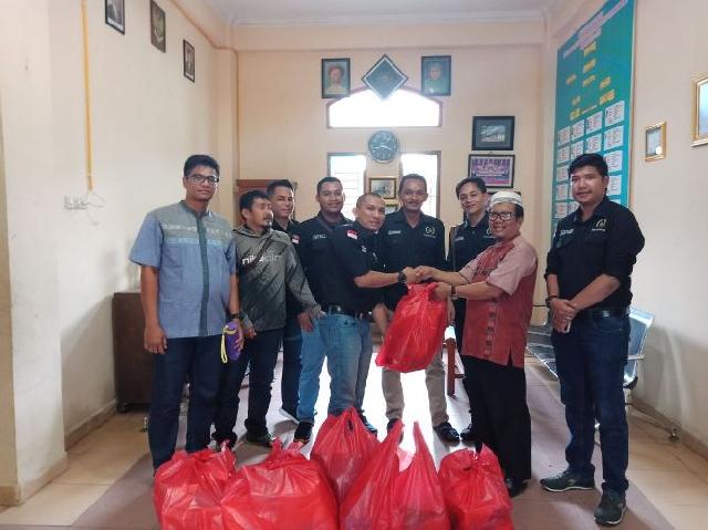 Pengurus PWI Pekanbaru memberikan bantuan makanan kepada Yayasan Panti Asuhan Putera Muhammadiyah, Senin (1/1/2018) Sore. (Foto: RMC/Dodi Ferdian)