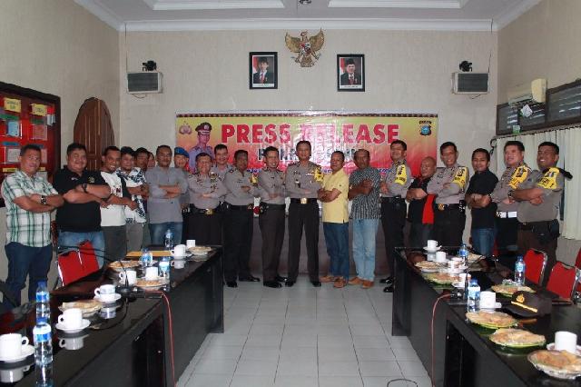 Kapolres Inhu AKBP Arif Bastari beserta jajaran foto bersama usai menyampaikan rilis akhir tahun.