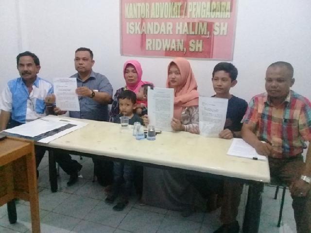 Istri dan anak-anak Poniman serta pengacara saat konferensi pers akhir tahun lalu.