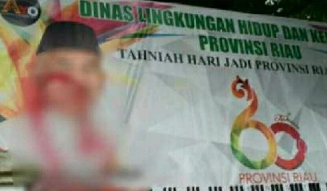Salah satu baliho milik Pemprov Riau yang dirusak orang tidak dikenal.