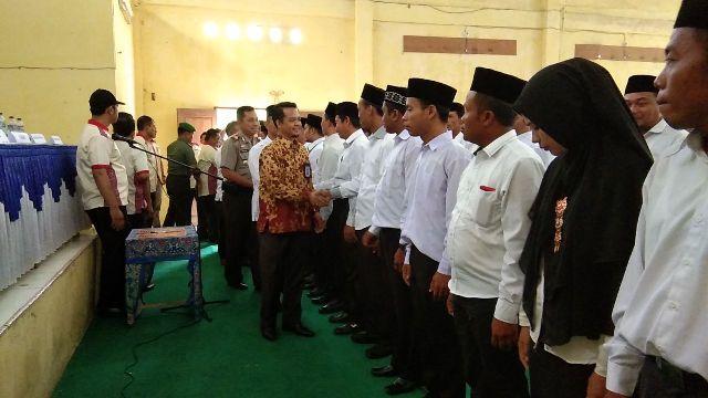 KETUA Panwaslu Kampar Marhaliman mengucapkan selamat sambil bersalaman dengan Panwaslu Kelurahan/Desa se Rayon II