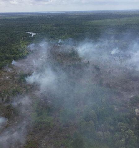 Penampakan lahan yang terbakar di Meranti setelah di-bombing oleh Helikopter Superpuma Sinarmas sebanyak 43 kali.
