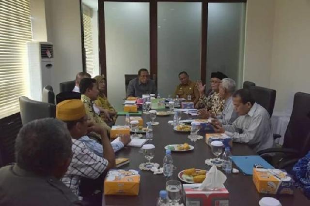 Tim yang diketuai Prof Suwardi didampingi Alimunir Hasani, A Latif, Hj Rosnaniar, Prof Dr Yusri Munaf, Dr Nasir Kholis, Mansur, Rustam Effendi, dan Fakhrunnas MA Jabar, disambut Bupati di ruang rapat Kantor Bupati, Senin (26/2/2018).