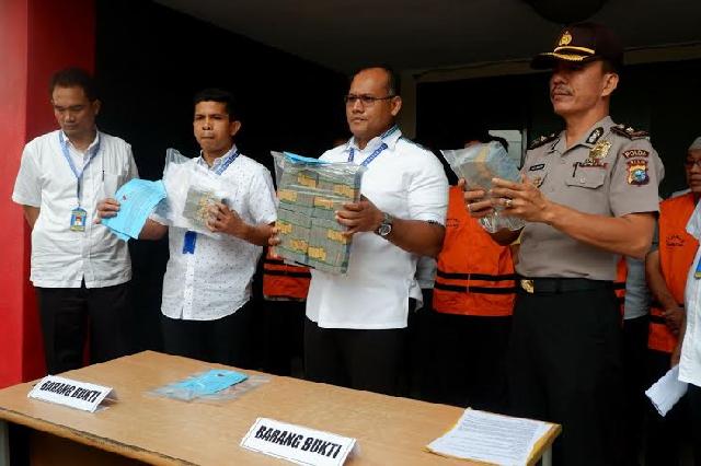Hal itu diungkapkan Direktur Reserse Kriminal Khusus (Dir Reskrimsus) Polda Riau, Kombes Pol Gidion Arif Setyawan, Selasa (13/3/2018). Dikatakan Gidion, ketiganya sudah diamankan melalui Operasi Tangkap Tangan (OTT) pada medio Desember 2017 lalu. Mereka ditangkap saat pembagian honor kepada ratusan anggota Satpol PP Kampar yang sebelumnya bertugas sebagai pengaman Porprov Riau di Kampar.