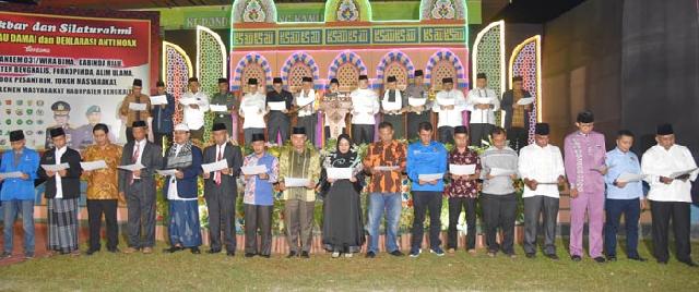 Dalam kesempatan itu, sebagai komitmen bersama, Kapolda Riau, Kabinda, Danrem 031, Pemerintah Kabupaten Bengkalis, Forkompinda, tokoh agama, tokoh masyarakat, tokoh pemuda dan ormas deklarasi dan penandatanganan menolak segala bentuk informasi hoax, dipandu Bupati Bengkalis Amril Mukminin yang diwakili Sekretaris Daerah H Bustami HY.