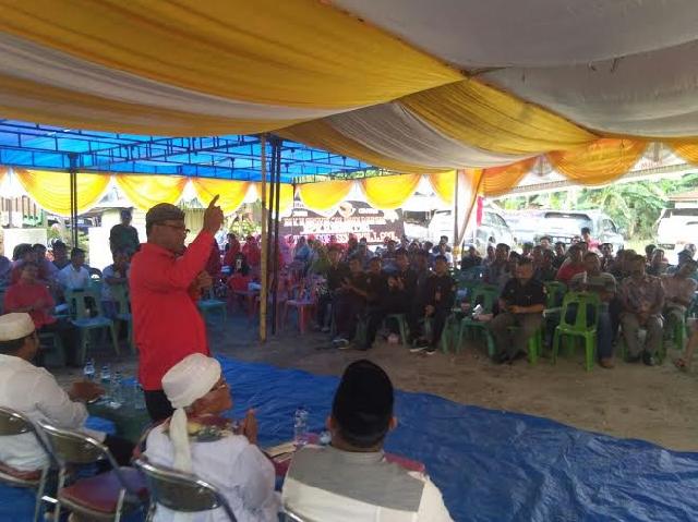 Suyatno saat orasi di hadapan warga Tambusai Utara, Rohul.