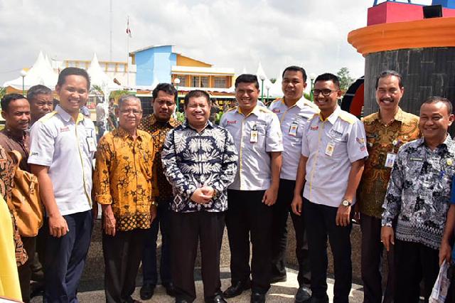 Bupati Bengkalis, Amril Mukminin didampingi Ketua TP PKK Bengkalis, Kasmarni meresmikan taman