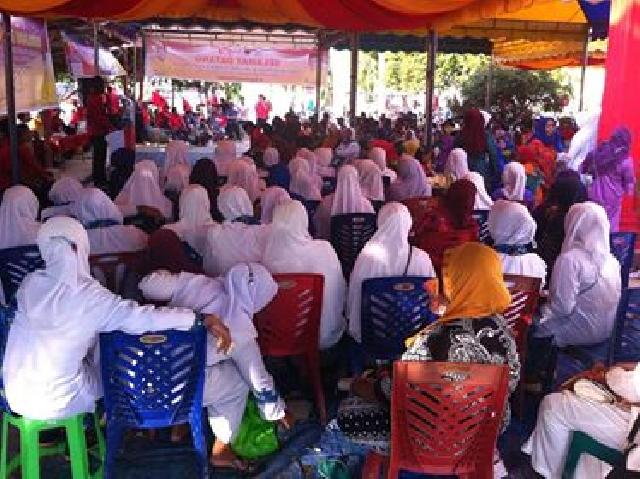 Ribuan masyarakat Desa Pekaitan antusias menyaksikan Cagubri Andi Rachman orasi dalam kampanye dialogis.