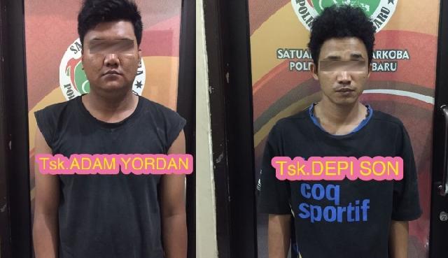 RIAUMANDIRI.CO, PEKANBARU - Tim Opsnal Sat Narkoba Polresta Pekanbaru berhasil mengungkap dua jaringan peredaran narkoba jenis sabu-sabu dengan tersangka Depison (30) dan Adam Yordan (25) di lokasi berbeda, Selasa (17/4/2018) lalu.