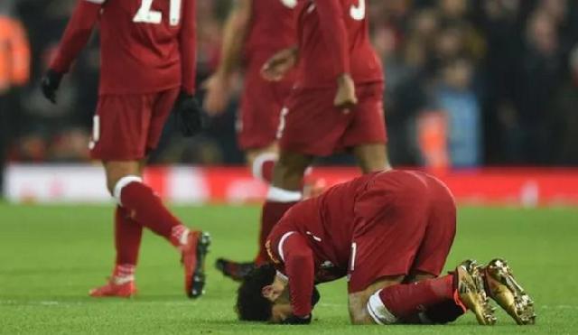 Mohamad Salah sujud syukur usai mencetak gol (foto: Getty Image)