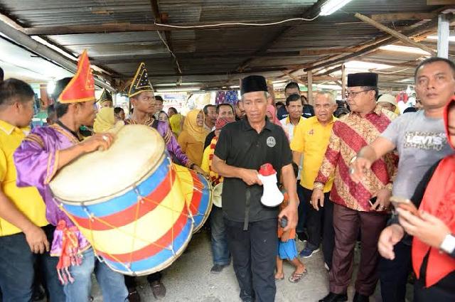 Pedagang Pasar Sukaramai Pekanbaru berbondong-bondong menyambut Calon Gubernur Riau Andi Rachman.