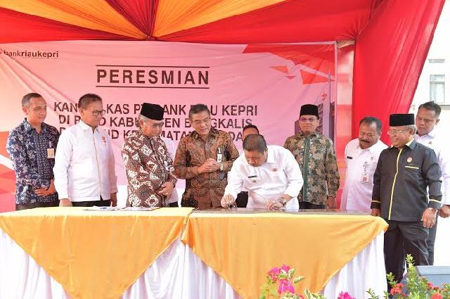 Dalam kata sambutannya Direktur Utama Bank Riau Kepri DR. Irvandi Gustari menyampaikan untuk wilayah Kabupaten Bengkalis saat ini terdapat sebanyak 9 jaringan Kantor Bank Riau Kepri yang terdiri dari 1 Kantor Bank Riau Kepri Cabang Bengkalis, 3 Kantor Cabang Pembantu yaitu capem Sei Pakning, Capem Duri dan Capem Syariah, 2 kantor Kedai yaitu Kantor Kedai Pinggir dan Kedai Batu Panjang Rupat dan 3 Kantor Kas yaitu Kantor Kas Bupati Bengkalis, Kantor Kas RSUD Kecamatan Mandau dan Kantor Kas RSUD Kabupaten Bengkalis. Untuk Anjungan Tunai Mandiri (ATM) wilayah Kabupaten Bengkalis memiliki 19 Unit ATM.