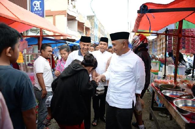 RIAUMANDIRI.CO, PEKANBARU - Calon Gubernur Riau nomor urut 4, Arsyadjuliandi Rachman blusukan ke Pasar Ramadan, Ujung Batu, Kabupaten Rokan Hulu, (18/5/2018). Ratusan pedagang dan masyarakat antusias melihat blusukan Gubernur Riau yang sedang cuti ini.