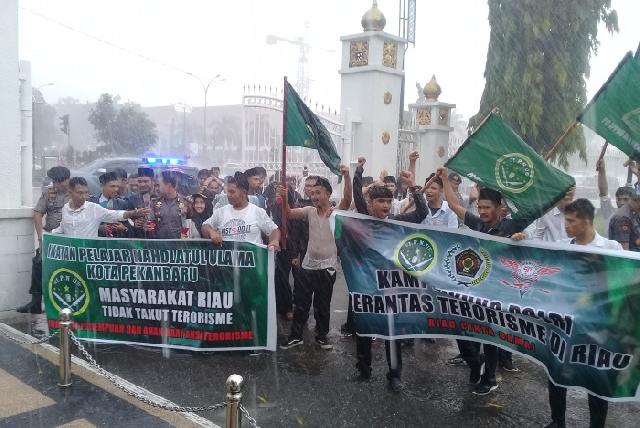 Selain itu, massa juga mengajak seluruh masyarakat Riau untuk saling menguatkan serta bergandengan tangan, bersama-sama melawan masuknya paham radikal.