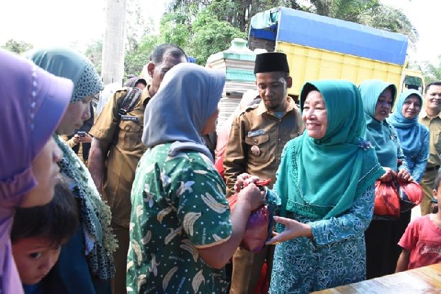 Pada kesempatan itu Ketua TP PKK Kampar didampingi oleh Bendahara dan Anggota PKK Kabupaten Kampar menyerahkan bantuan Sembako kepada masyarakat kurang mampu. "Semoga bisa untuk menambah dan membantu terhadap kebutuhan masyarakat, ini juga merupakan bentuk jalinan silaturahmi dengan masyarakat,” ujar Nur’aini