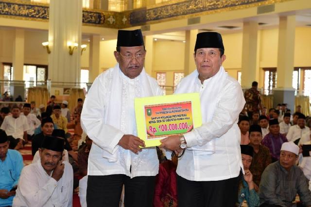 Penyerahan bantuan keuangan kepada desa oleh Plt Gubri kemarin dilakukan di masjid Agung Islamic Center Pasir Pengaraian, di mana untuk Kabupaten Rohul sebanyak 139 desa dengan anggaran Rp13,9 miliar. Kemudian Kepulauan Meranti sebanyak 98 desa dengan anggaran Rp9.8 M, dan Kuansing 218 desa dengan Rp21,8 miliar.