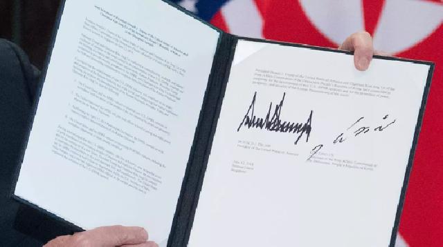 Kim Jong-un dan Donald Trump Tandatangani Dokumen Bersejarah pada KTT di Singapura