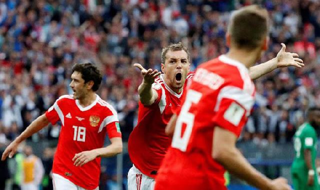 Di laga perdana melawan Arab, Rusia bermain gemilang. Tuan rumah berpesta gol lewat aksi Denis Cheryshev yang membukukan dua gol, lalu Yuri Gazinskiy, Artem Dzyuba, serta Aleksandr Golovin yang masing-masing bikin satu gol. Kemenangan itu mengantar Rusia memimpin Grup A.