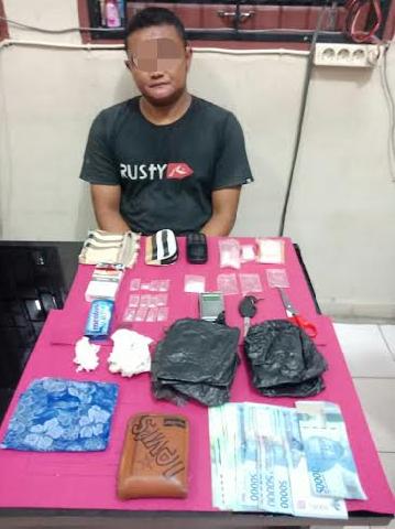 Dari tersangka ini diamankan sejumlah barang bukti antara lain 13 paket narkotika jenis sabu yang dibungkus plastik bening, 1 buah timbangan digital, 3 pak plastik bening, 2 buah dompet, 1 unit sepeda motor Honda Beat, 1 unit HP Nokia warna hitam dan uang tunai Rp650 ribu serta beberapa barang bukti lainnya terkait kasus ini.