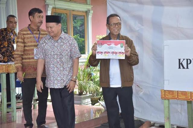 RIAUMANDIRI.CO, BANGKINANG - Bupati Kampar Azis Zaenal dan Wakil Bupati Catur Sugeng Susanto melakukan pencoblosan pada Pilgubri 2018 di kediaman masing-masing, Rabu (27/6/2018).